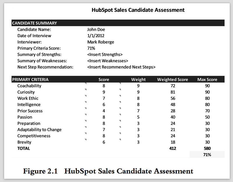 HubSpot sales hiring criteria example, from the book.