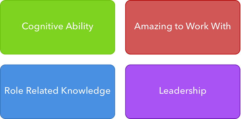 To find a software engineer that matches my company’s needs, I like to group the candidate’s skills into the following 4 categories for further analysis. To be honest, I borrowed a lot of this from Google, where I think they have quite a clean way of assessing a candidate: